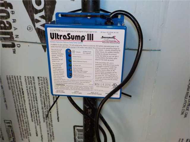 Lors de notre visite à cette maison à Dorval, nous avons déterminé qu'il était mieux d'installer un système de pompage d'appoint. Le système d'appoint UltraSump vient avec une pompe qui fonctionne sur un courant DC, une batterie marine ainsi que le régulateur de charge que vous pouvez voir dans la photo. Ce régulateur sert à ce que la batterie soit toujours chargée optimalement et à sonner pour aviser le client en cas de problème.