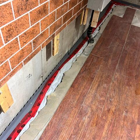 Pour remédier à ce problème, nous avons installé notre système de drainage intérieur breveté WaterGuard le long de la semelle du sous-sol. L’installation a été rapide et sans encombre, avec un minimum de perturbations. De plus, et pour plus d'optimisation, nous avons installé notre pare-vapeur CleanSpace sur les murs. Cette membrane limite l’humidité provenant des parois du sous-sol, assurant ainsi un environnement plus sain et mieux protégé.