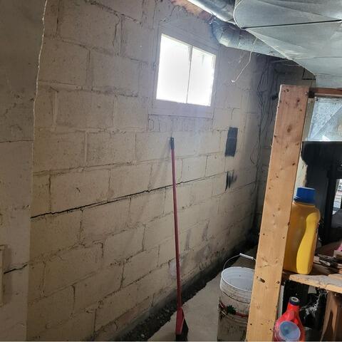 Les murs intérieurs d'un sous-sol à Saint-Joseph-De-Beauce, Québec, présentaient d'importants signes d'affaissement, et posant ainsi un risque structurel considérable. Afin d’assurer la stabilité à long terme des fondations, nous avons mis en place notre système StableLock, une solution de renforcement complète. Ce processus implique le coulage d’un mur de soutien en béton afin d'arrêter l'affaissement en cours, de redistribuer efficacement le poids et la pression. De plus, nous avons installé notre système PowerBrace en acier galvanisé de haute résistance, conçu pour offrir une stabilisation optimale et prévenir tout déplacement ultérieur des murs de fondation. Le propriétaire fut très satisfait et rassuré par notre capacité à exécuter la solution de manière efficace, avec un minimum de perturbations dans son environnement de vie.