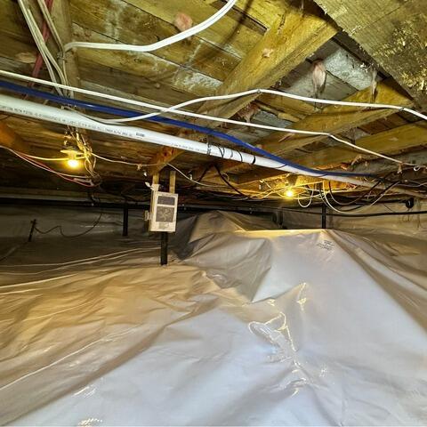 Pour résoudre le problème, notre équipe a installé notre système d'encapsulation CleanSpace® ainsi que la membrane de drainage. Cette combinaison permet d'empêcher l'humidité de pénétrer, d'évacuer l'eau et de protéger la structure contre les dommages. Nous avons également ajouté un déshumidificateur SaniDry™ Sedona, afin de maintenir un taux d’humidité optimal et de garantir un environnement sain et sec en tout temps. Aujourd’hui, ce vide sanitaire n’est plus une source de problèmes, mais une véritable protection invisible qui soutient la maison et le confort de ceux qui y vivent.