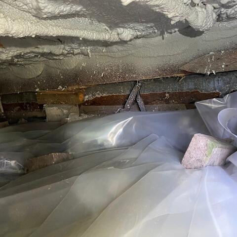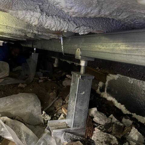 Nous avons ajouté des piliers de soutien SmartJack à ceux existants. Ils sont ajustables permettant un léger redressement du plancher au fil du temps. Et puis, avons encapsulé le vide sanitaire avec notre CleanSpace et installé un système de pompe de puisard pour réduire l'humidité.