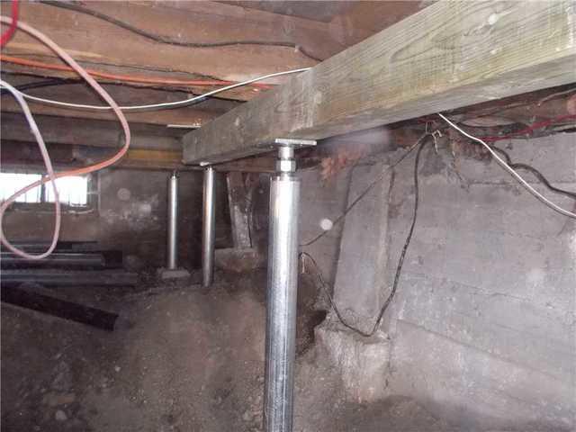 Réparation des vides sanitaires - Colonnes en accier comme support de poutres et de solives